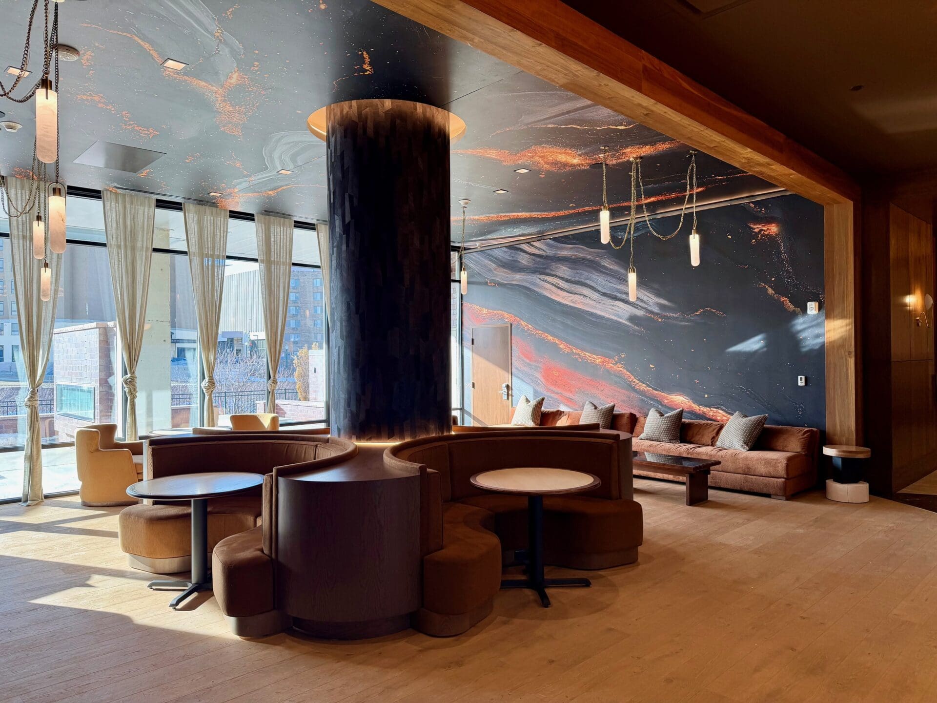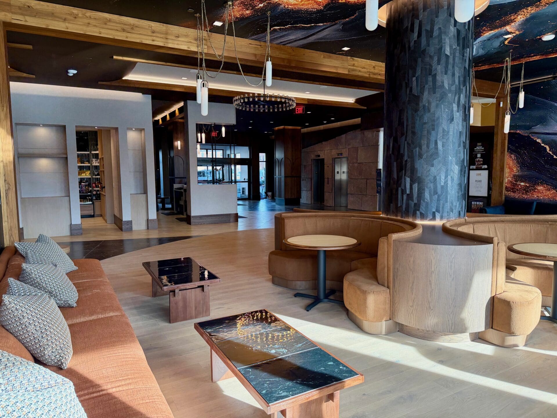 The most recent area to be unveiled is the lobby, which was opened up significantly and “has a modern, higher-end feel,” Deuel said. “Galaxy-feeling wallpaper takes you to a whole new dimension.”