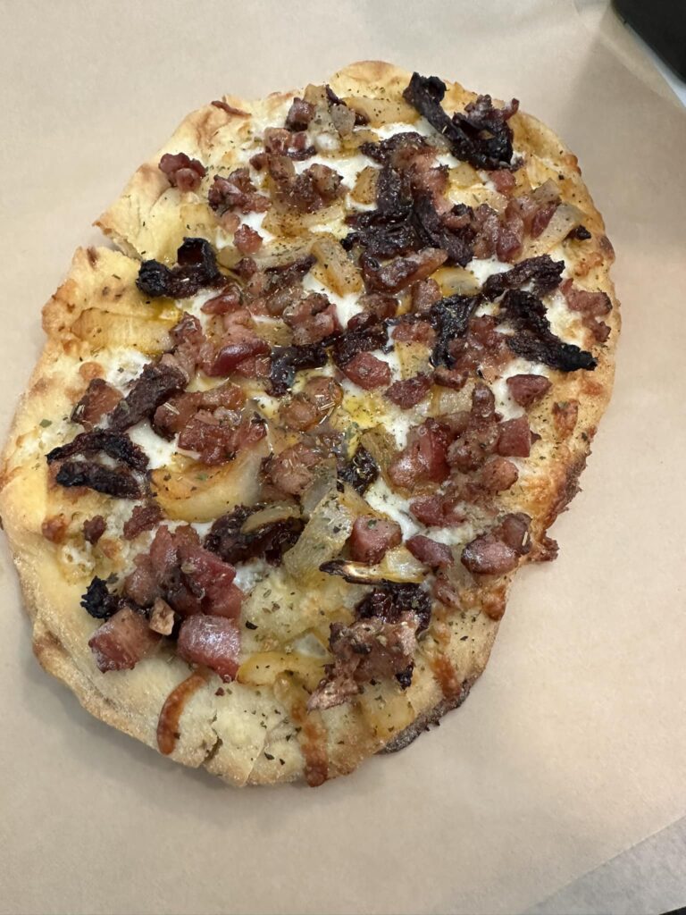 The menu for Friday nights features a specialty flatbread, giant pretzels with chunks of kielbasa and a cup of beer cheese dip nestled in the knots and pretzel sticks with beer cheese dip, along with beer and wine. Those “kid-free” evenings run from 5:30 to 9 p.m.