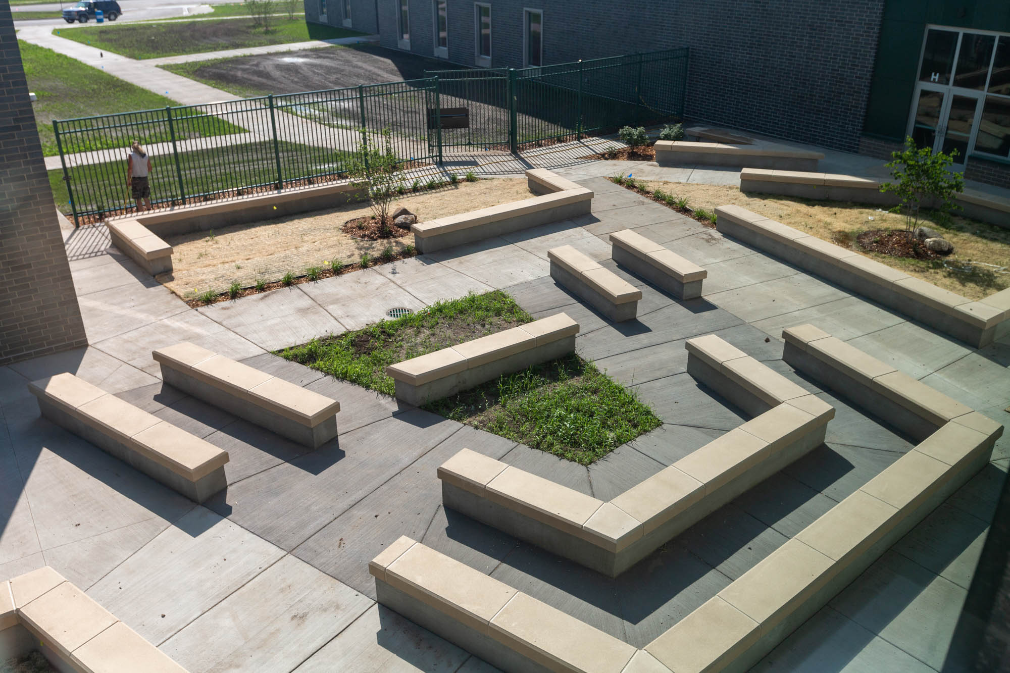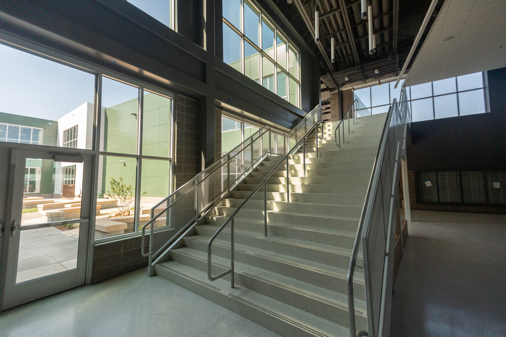 An artificial turf field was created outside and designed in proximity to “the groups that use it most: band, soccer, football, the PE staff,” Conrad said. “And it still feels like a connective, cohesive environment.”