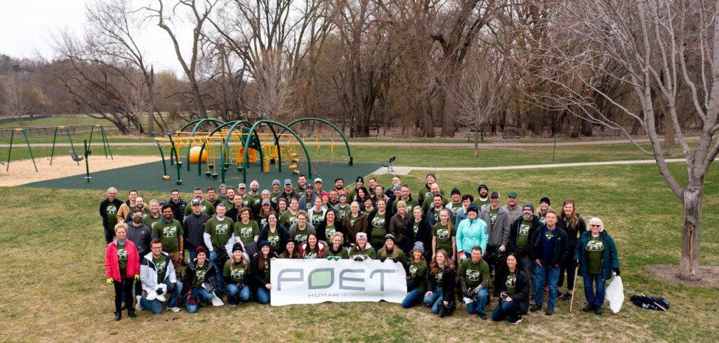More than 90 POET team members and their families celebrated Earth Day by cleaning up Sioux Falls parks April 16. They collected over 1,900 pounds of trash and recyclables along the Big Sioux River. Team members at POET’s 27 bioprocessing facilities also were encouraged to celebrate Earth Day through community cleanups, recycling drives or other acts of environmental stewardship.