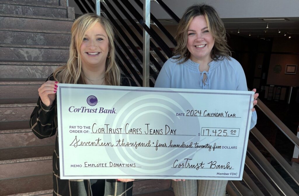 In 2024, CorTrust Bank’s Cares Jeans Day program donated $17,425 to more than 40 local nonprofits in the areas it serves. In exchange for a financial gift each month, CorTrust employees can wear jeans on Fridays.