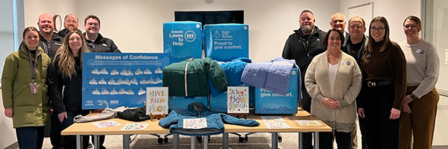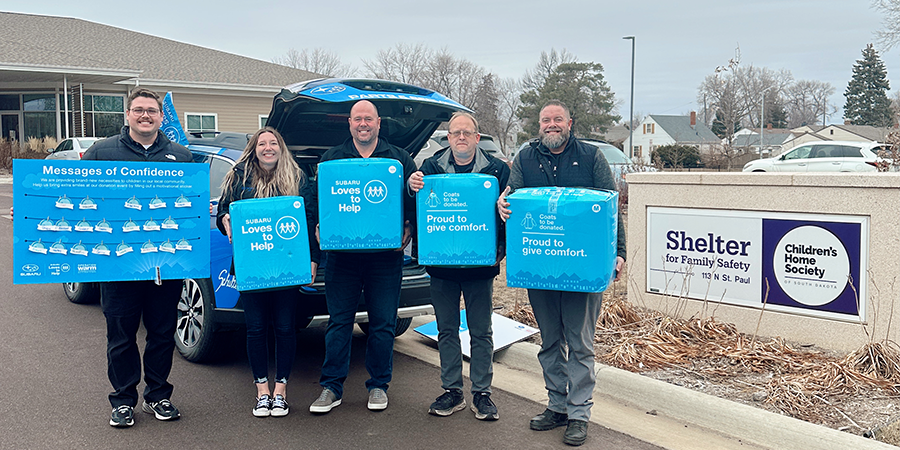 Schulte Subaru donated 120 new coats to Children’s Home Shelter for Family Safety to help children who are in urgent need of staying warm this winter. The gift was part of the Subaru Loves to Help initiative and Subaru’s partnership with Operation Warm. Schulte Subaru staff also donated a message board with motivational stickers for the children. The stickers included notes such as “I am loved,” “I am kind” and “I am courageous.”