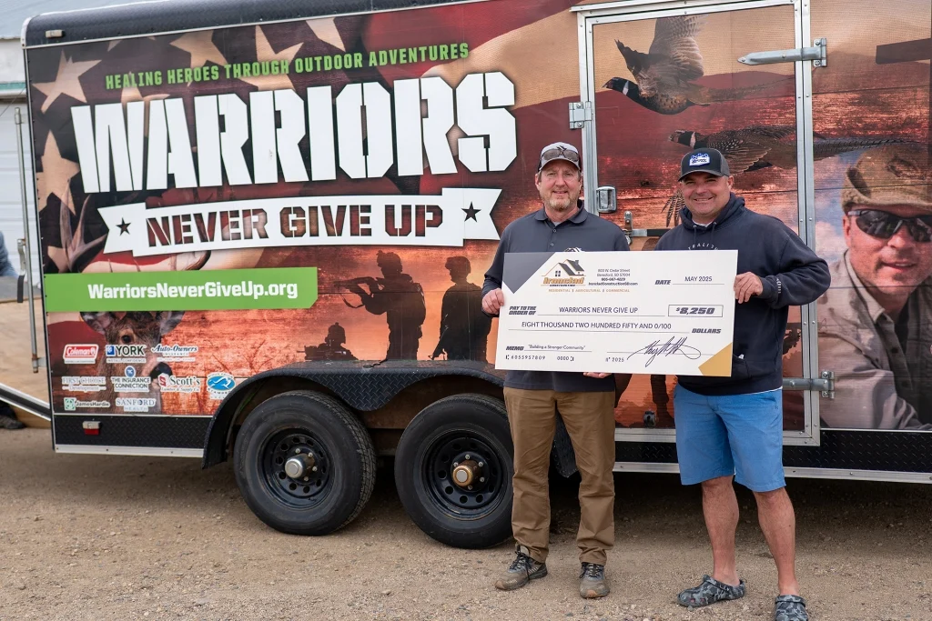 Ironclad Construction of Beresford has donated $8,250 to Warriors Never Give Up as part of its spring Building for a Cause campaign. The company, a roofing and exterior remodeling contractor that serves southeast South Dakota, northwest Iowa and northeast Nebraska, pledged a donation of $250 for every exterior project sold from March 13 to May 15. Warriors Never Give Up is a South Dakota nonprofit that provides outdoor adventures and community support for previously deployed or service-connected disabled veterans. The donation was presented during a recent fishing event for the organization, which Ironclad also helped sponsor.