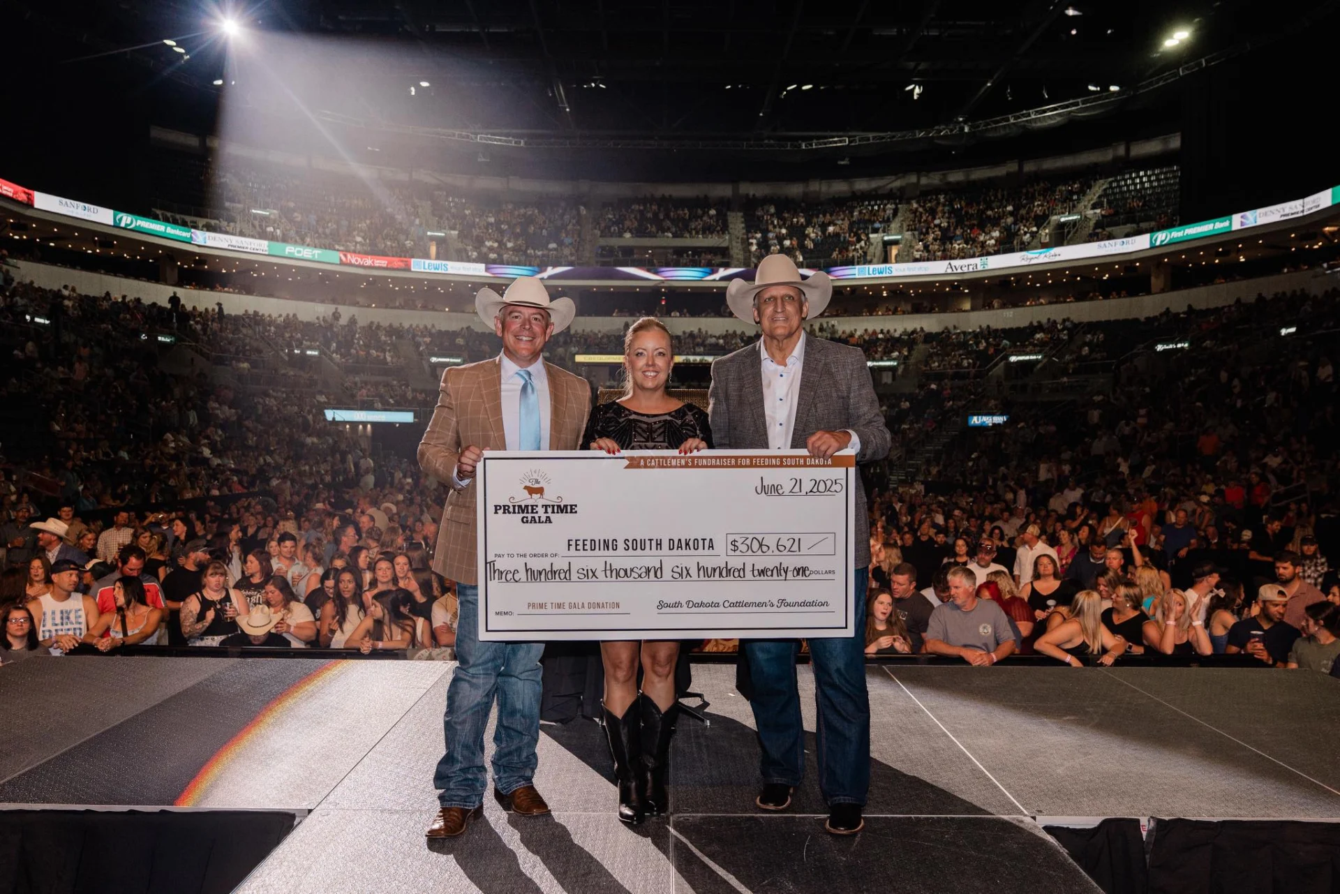 The South Dakota Cattlemen’s Foundation presented a donation of $306,621 to Feeding South Dakota during the foundation’s 12th annual Prime Time Gala on June 20. Feeding South Dakota will use the funds to purchase and distribute beef to hungry individuals and families across South Dakota. A drawing also was held for the annual Prime Time Gala Raffle, which featured a 2025 Chevrolet Silverado 2500 Duramax Crew Cab 4WD LT donated by Billion Chevrolet. During the event, the foundation awarded $15,000 in scholarships to five students attending South Dakota schools who are interested in the improvement of beef production and promotion. In addition, the foundation gave a total of $6,000 in awards to the top three finishers in its individual and group Fed Cattle Challenges, which provide an opportunity for youths age 14 to 18 to learn about the science and economics of finishing cattle by participating in a cattle finishing program. The goal is to develop the next generation of feed yard owners and managers in South Dakota.