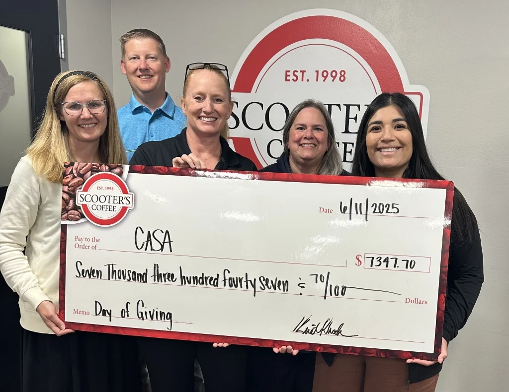 As part of its annual Day of Giving, Sioux Falls Scooter’s Coffee locations donated 100 percent of sales on June 10 to four local agencies that support foster children and foster families. Each of these organizations received $7,348: Family Visitation Center, The Foster Network, Royal Family Kids Camp and Sioux Falls CASA.