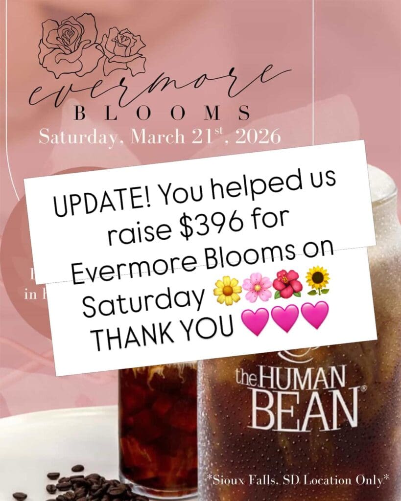 The Human Bean donated 10 percent of sales from March 21 – almost $400 — to Evermore Blooms, a local organization that provides support to moms who have experienced a miscarriage.