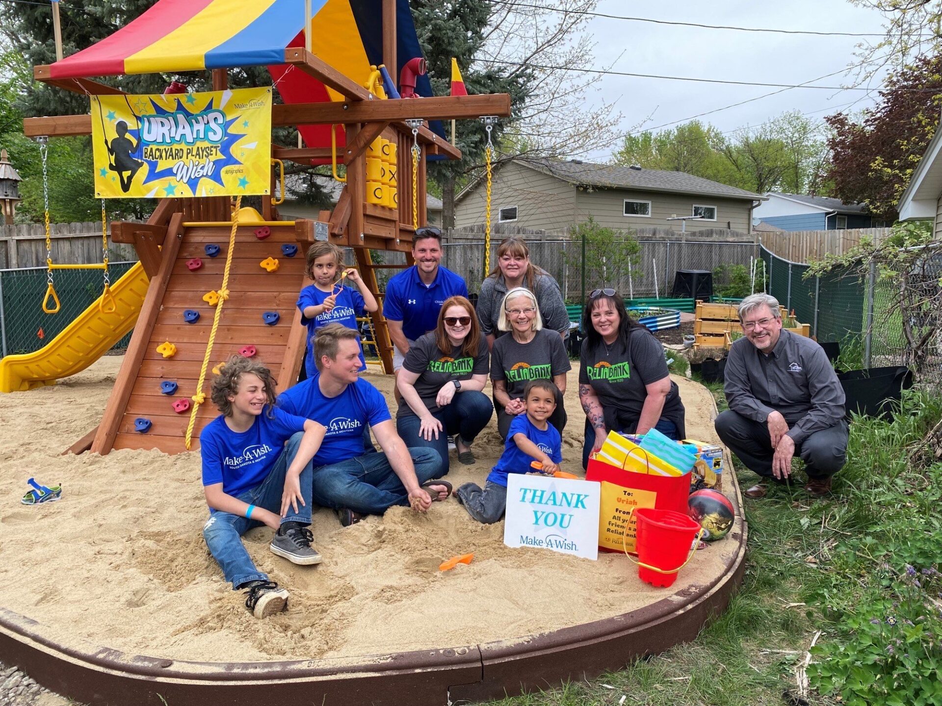Reliabank and the Liddell family sponsored Uriah’s wish for a backyard play set through Make-A-Wish South Dakota & Montana. The 3-year-old boy from Sioux Falls has leukemia. Business partners helping with the wish were Rainbow Play Midwest – Sioux Falls, Alex’s Tree Services, Brock Contracting and Granberg Landscaping.