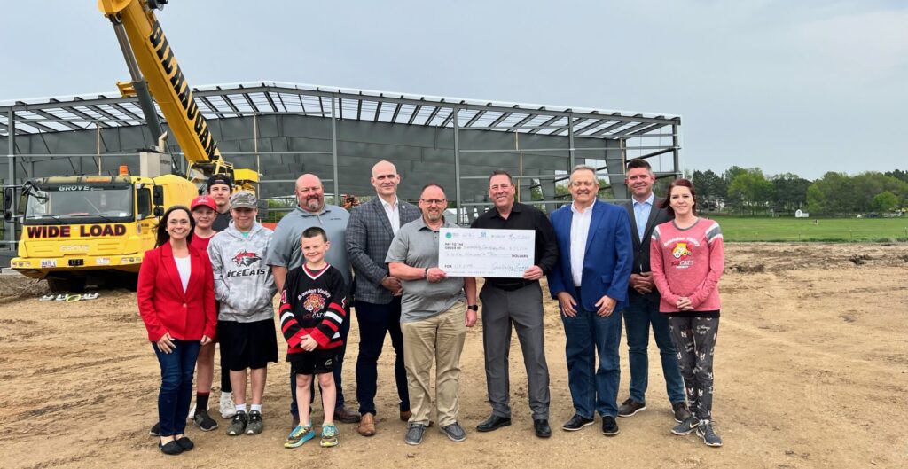 Sioux Valley Energy, along with its cooperative partners Basin Electric Power Cooperative, East River Electric Power Cooperative and CoBank, donated $35,000 to the Brandon Valley Ice and Inline Hockey Association toward construction of its indoor rink being built in Brandon’s Aspen Park.
