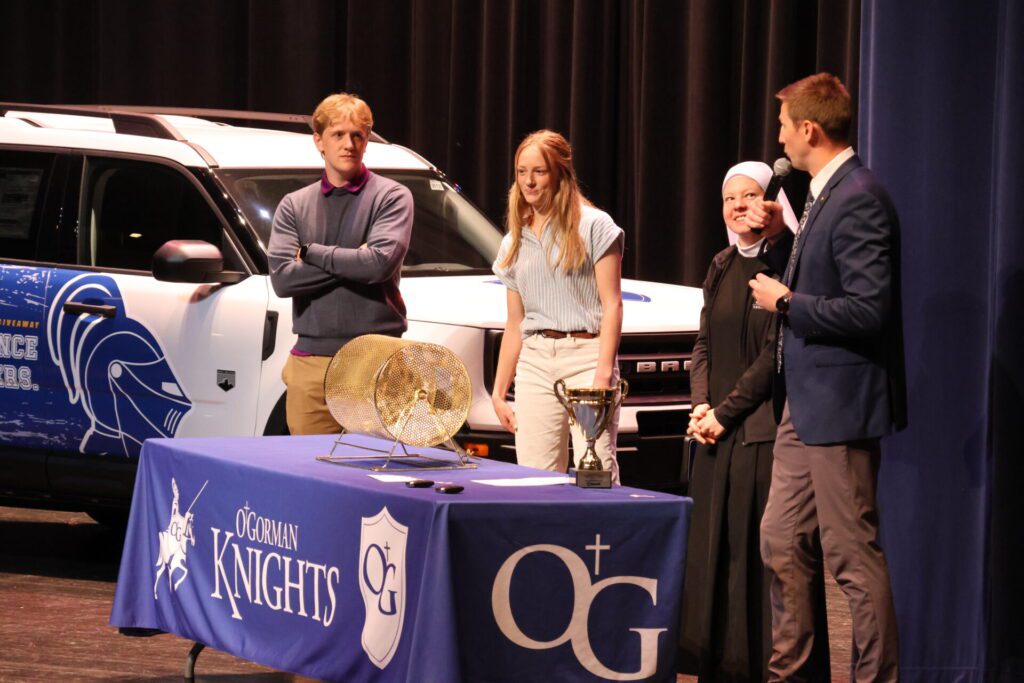 Sioux Falls Ford Lincoln provided the funding for a $2,000 scholarship and a two-year lease on a 2024 Ford Bronco Sport for O’Gorman High School’s effort to improve student attendance. At the end of each month, juniors and seniors who had perfect attendance had their name placed into a drawing for the chance to win the prizes.