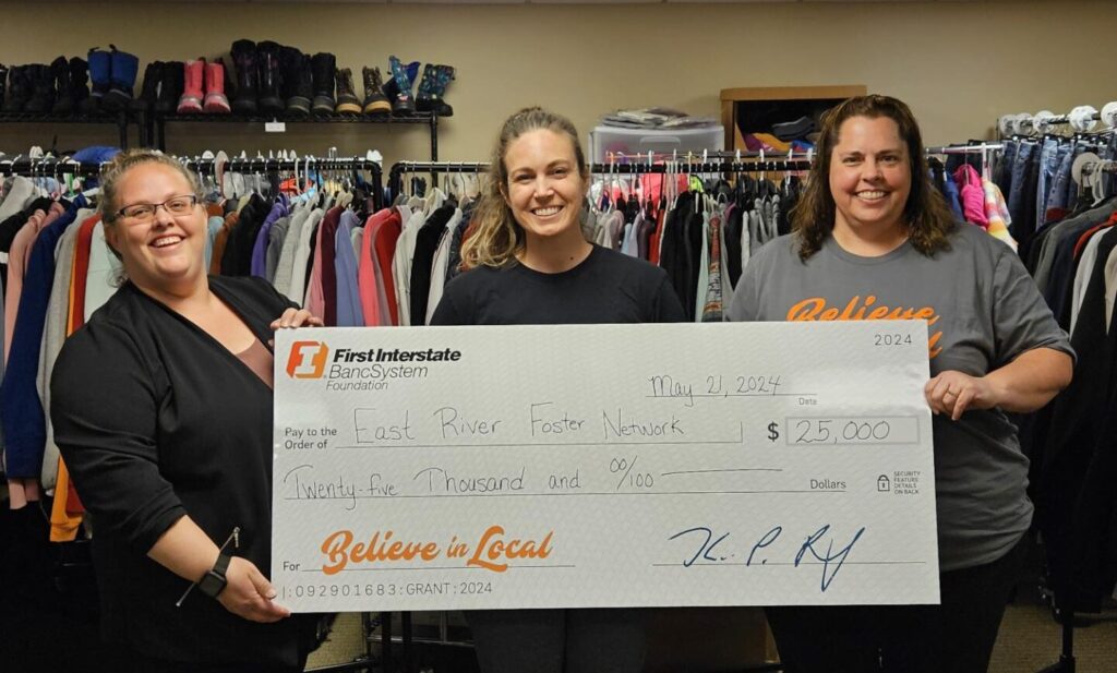 East River Foster Parent Network has received a $25,000 donation from First Interstate Bank and the First Interstate BancSystem Foundation as part of the Believe in Local program. The funds will go toward providing reliable foster care support to families in the Sioux Falls area. Each year, Believe in Local awards $25,000 to 40 nonprofits across the bank’s 14-state footprint, each of which is nominated by an employee.