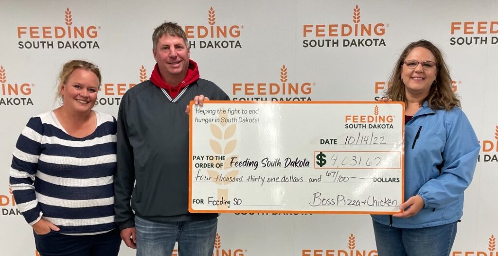 Boss’ Pizza & Chicken celebrated its 17th anniversary by donating 17 percent of sales from two days at Sioux Falls and Tea restaurants to Feeding South Dakota. The effort raised just over $4,030.