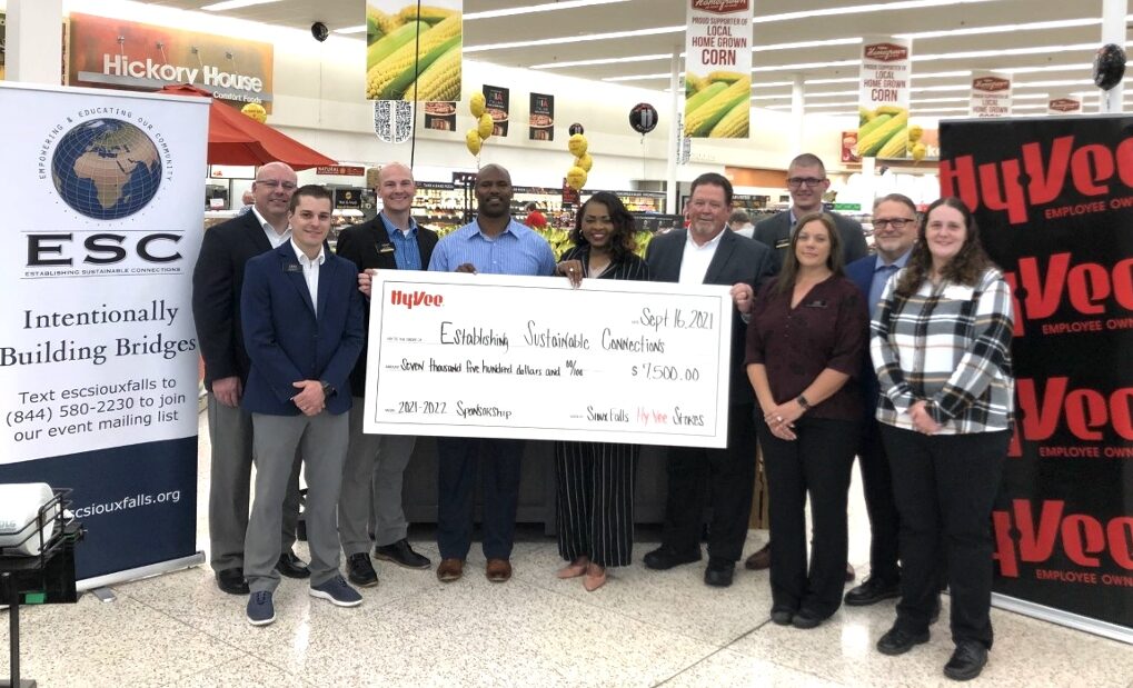 Hy-Vee Inc. donated $7,500 to Establishing Sustainable Connections as part of a $1 million and 1 million volunteer-hour commitment to organizations that support racial unity and equality. Establishing Sustainable Connections works to empower underrepresented communities in the Sioux Falls area.