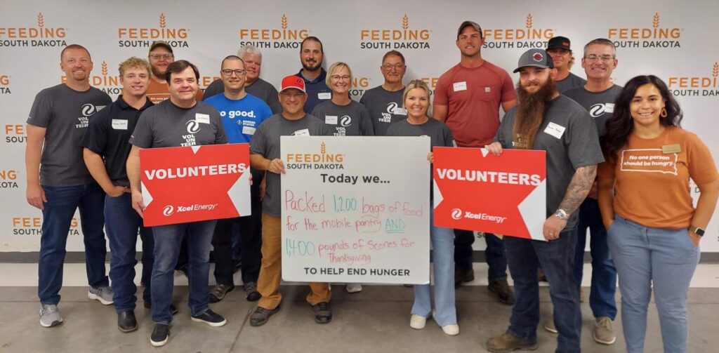 Nearly 2,500 volunteers from Xcel Energy and the communities it serves took action to support nonprofit organizations during the company’s 13th annual Day of Service earlier this month. The volunteers dedicated over 7,200 volunteer hours to support over 100 organizations with projects that ranged from packing meals and repairing homes for families to cleaning up nature trails and planting trees. In Sioux Falls, 14 volunteers packed 1,200 bags of food for Feeding South Dakota’s mobile pantry and 1,400 pounds of scones for Thanksgiving holiday meals. Day of Service, a tradition since 2010, was created as a tribute to the victims, survivors and first responders of 9/11, as well as all those who work to keep communities and the country safe.