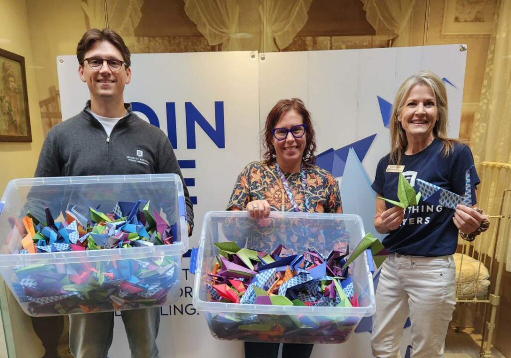 Together with the community, Security National Bank of South Dakota folded almost 500 origami cranes and swans at the Washington Pavilion Sidewalk Arts Festival. The bank team delivered the cranes and swans to be displayed at the Children’s Home Shelter for Family Safety here and at the new Children’s Home Society campus in the Black Hills.