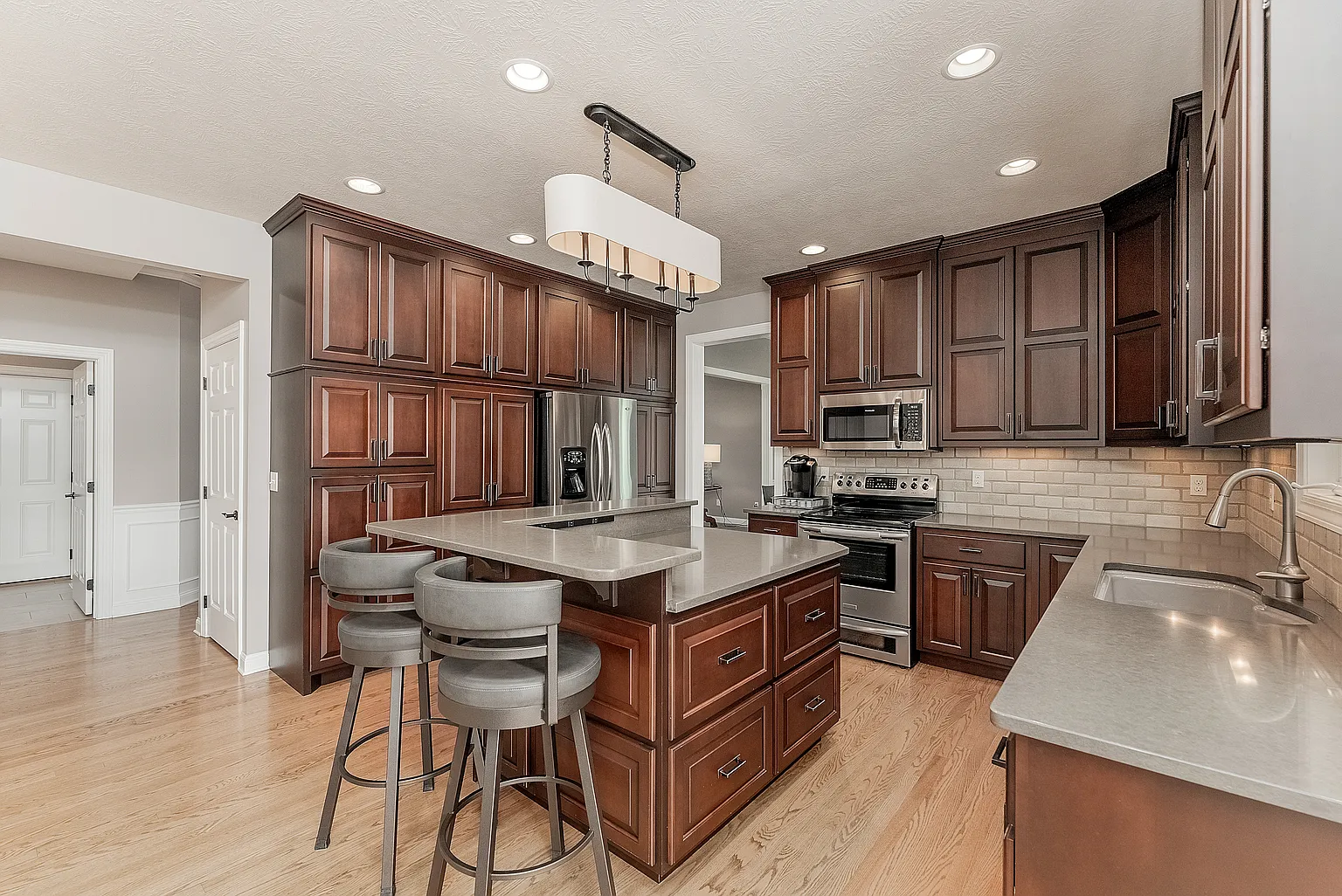 An open-concept main level is ideal for gatherings and meals, while still offering distinct spaces for working, studying and relaxing.