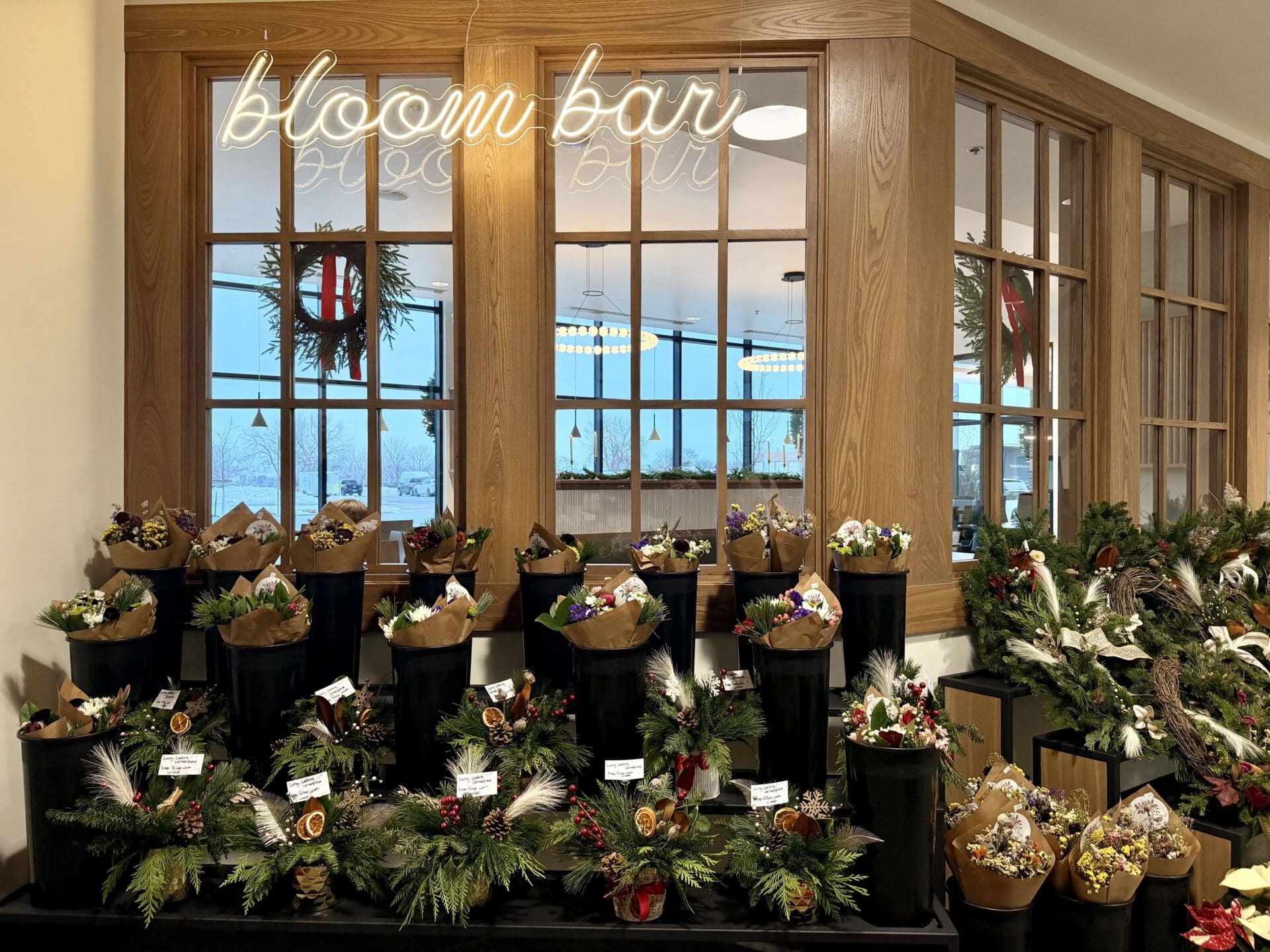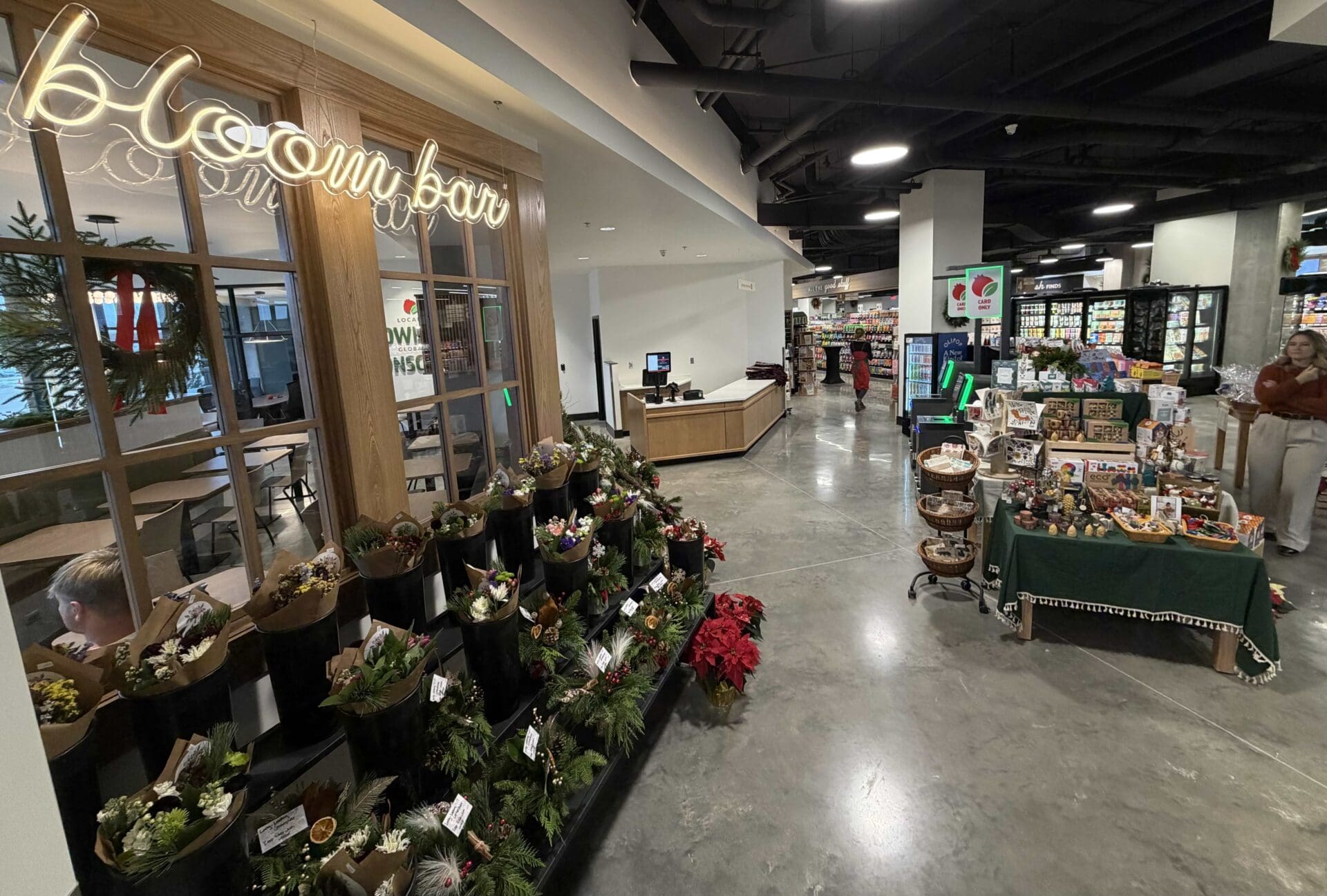 There’s a “bloom bar” filled with local flower arrangements and bouquets.