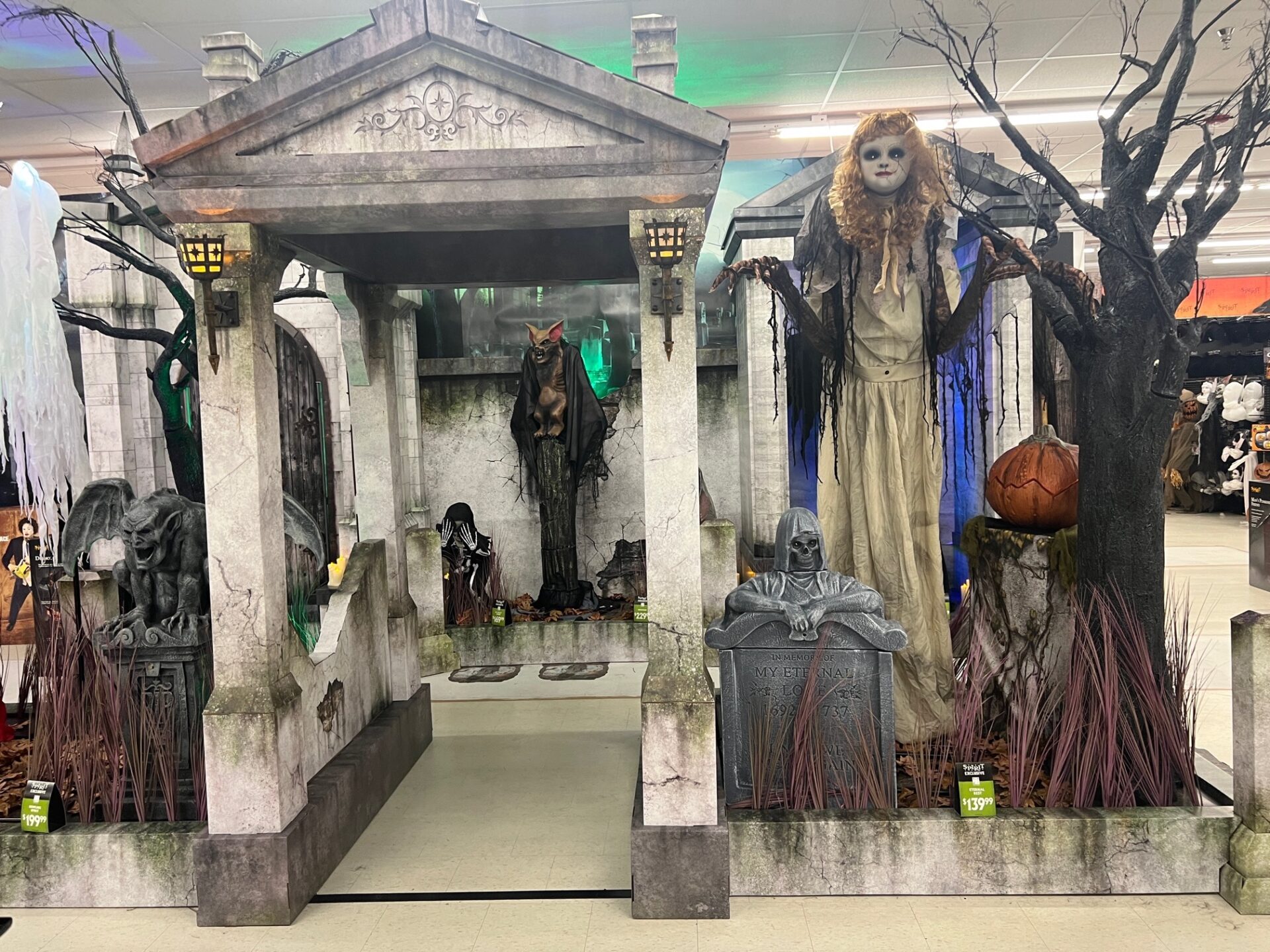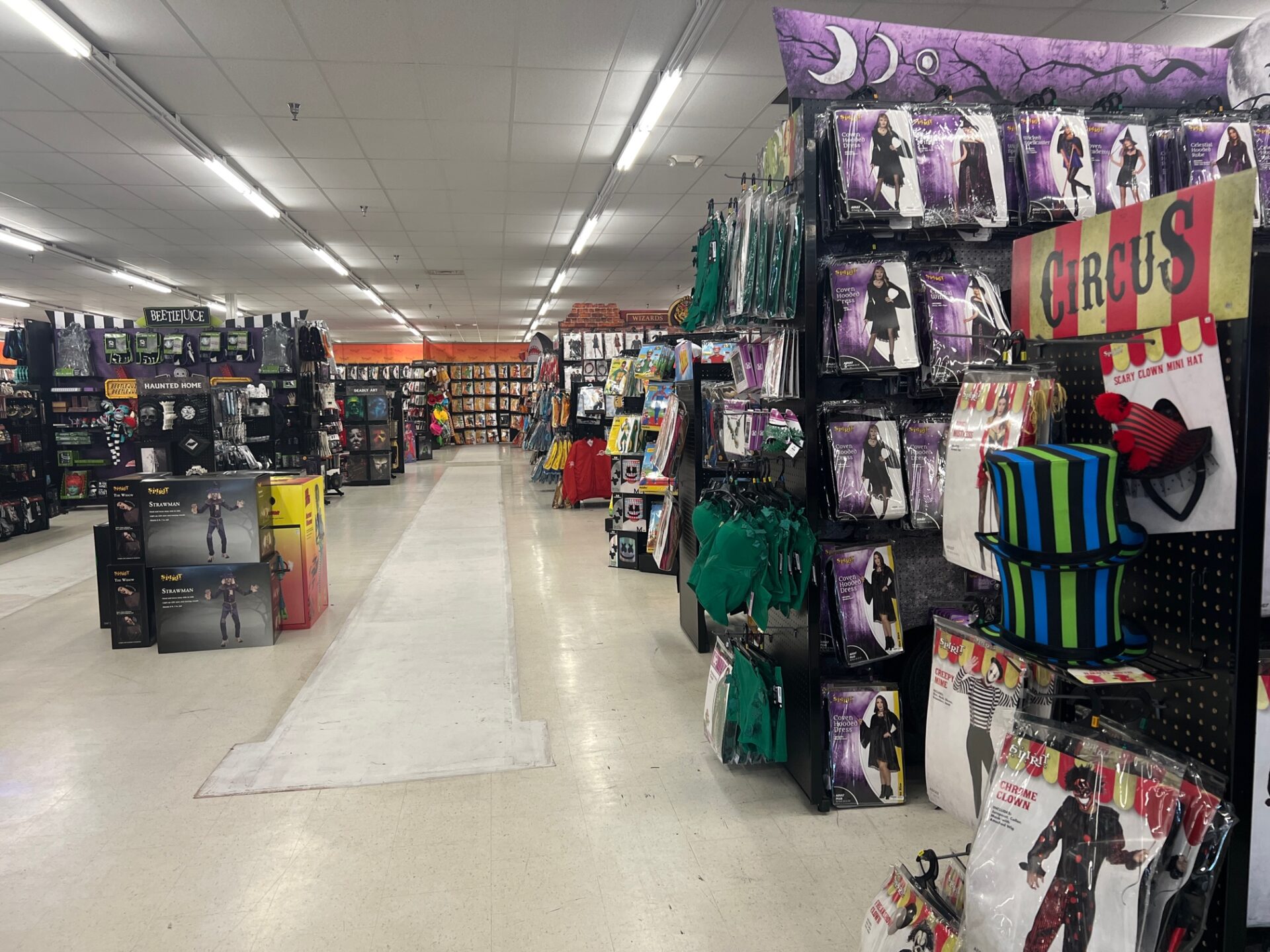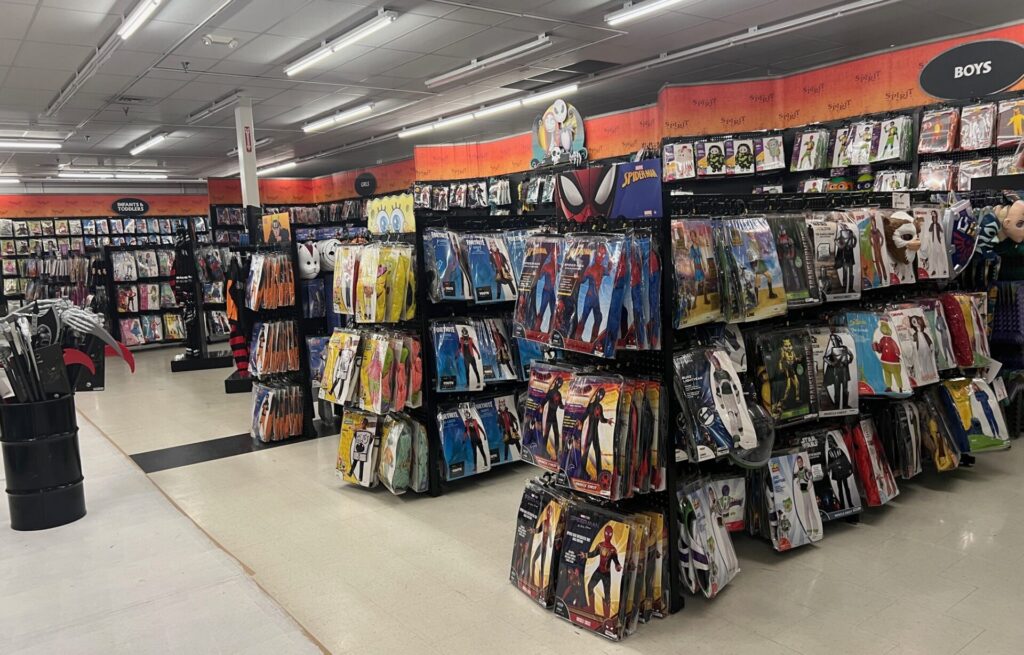 The store is filled with Spirit Halloween’s large-scale displays as well as aisles of costumes and seasonal decor.