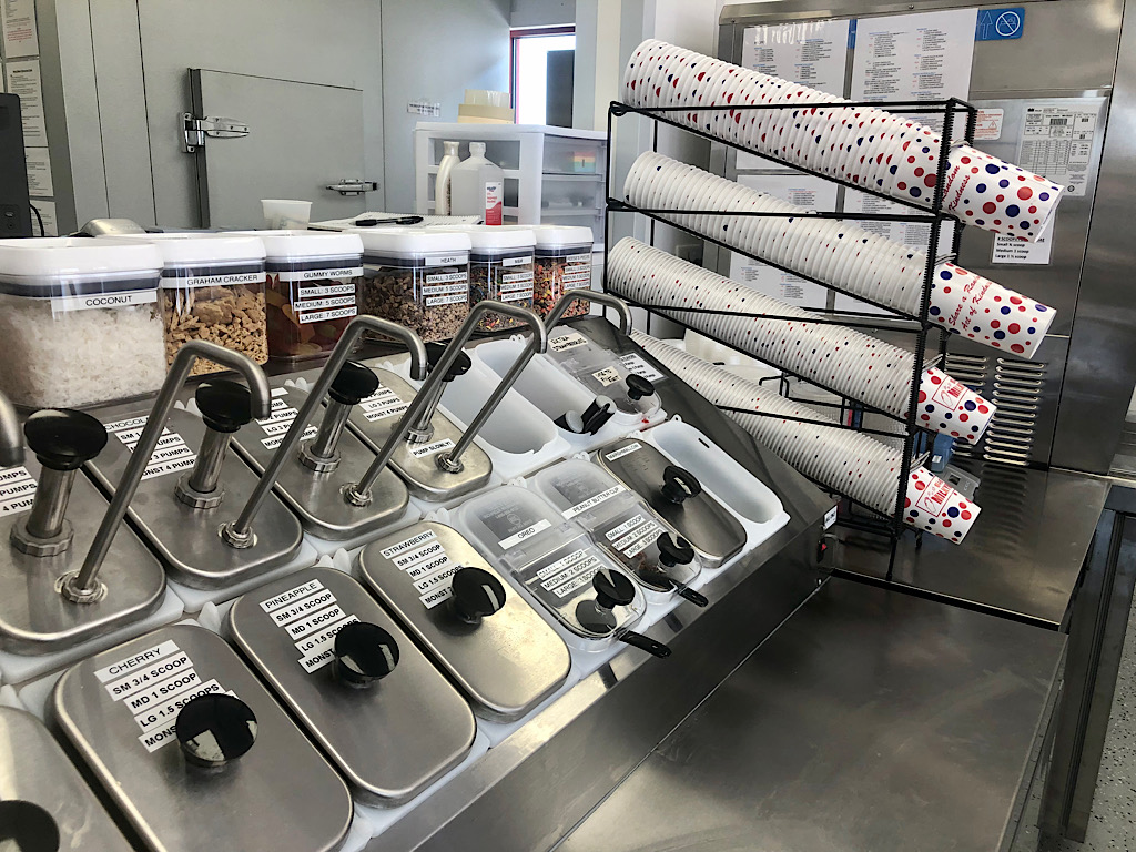 In addition to soft-serve ice cream, sundaes, malts, shakes, Avalanches and other frozen treats, the shop serves food such as sloppy joes, hot dogs, corn dogs and walking tacos.