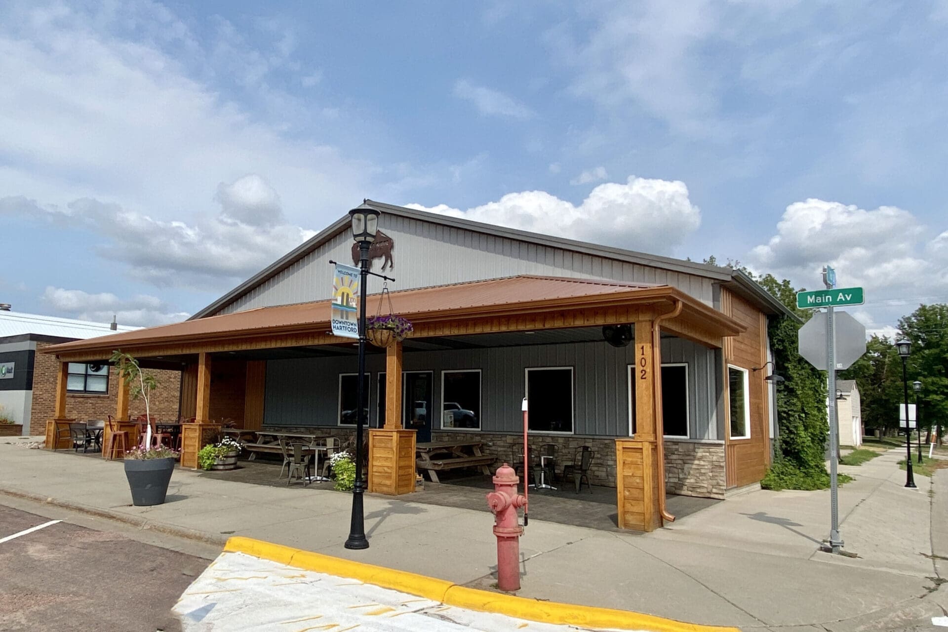 There’s also a 780-square-foot canopy on the front of the building for additional seating, plus free on-street parking and a paved lot on the east side of the building for additional parking.