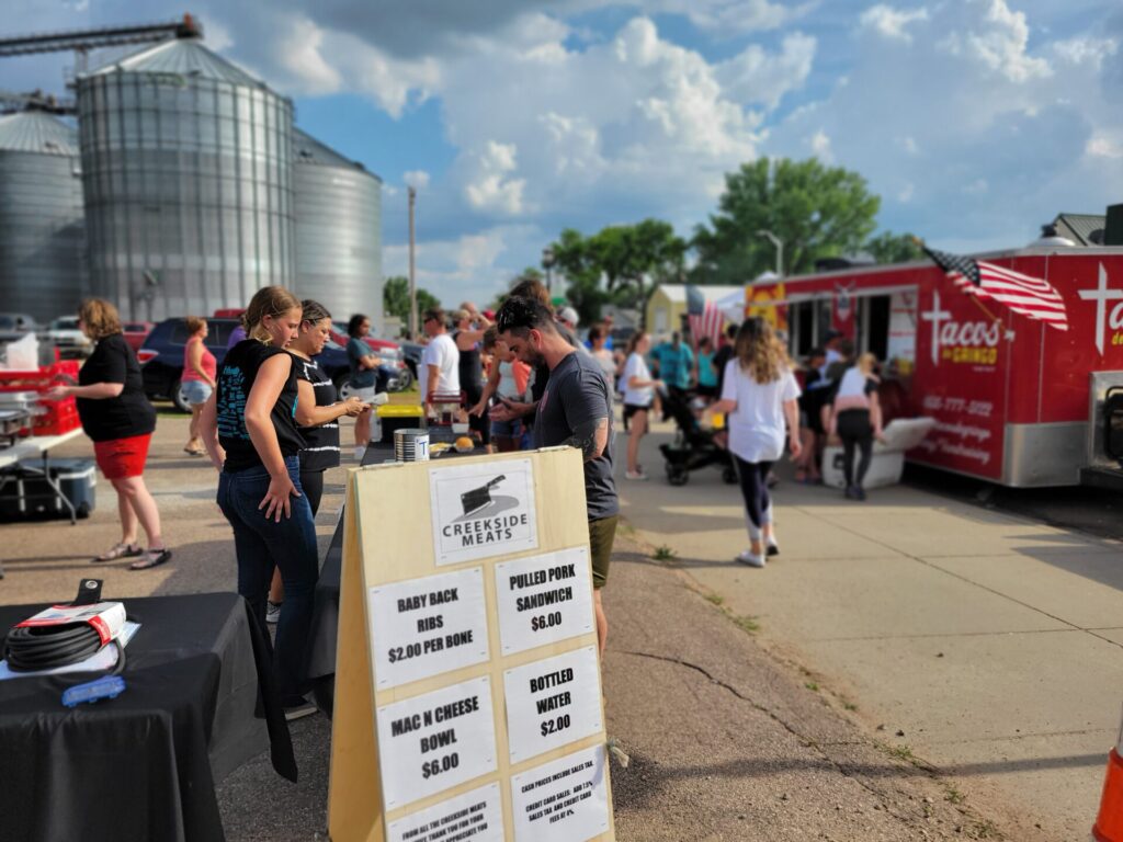 Each market features live music and supper from Creekside Meats and a couple of food trucks. An open-container policy allows customers to enjoy a craft beer from Buffalo Ridge Brewing or a drink from one of the bars while they shop.