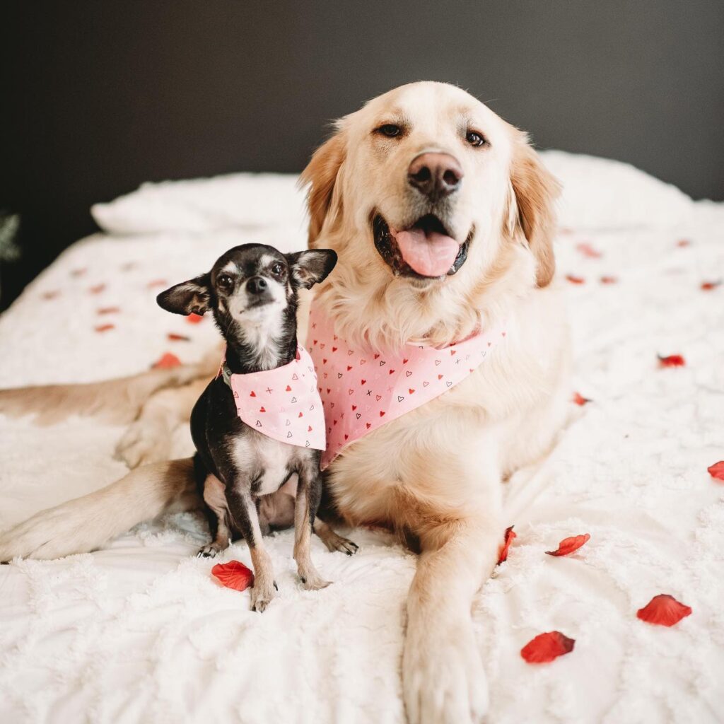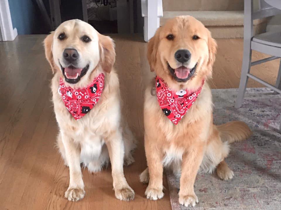 About: Reversible pet bandanas in sizes XS-L. They are secured closed with velcro.