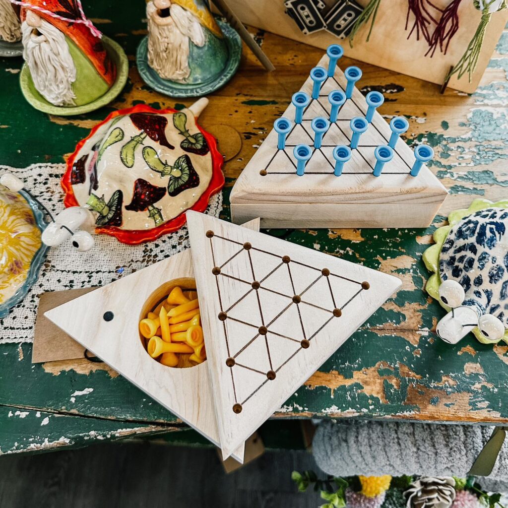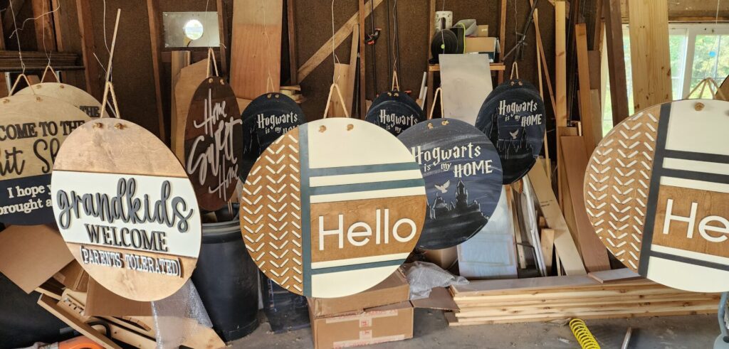 About: Wood yard games, seasonal decorations, decorative plaques for children’s rooms, candle holders and assortment of board games