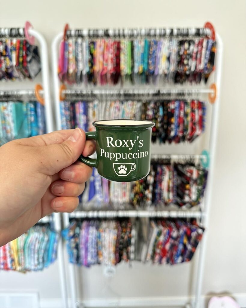 About: Homemade pet bandanas, pet bow ties, cat toys, scrunchies, magnets and personalized puppuccino mugs and kitchen towels