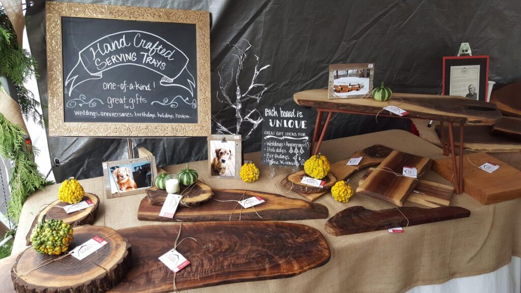 About: Walnut charcuterie boards, custom tables and barn wood frames