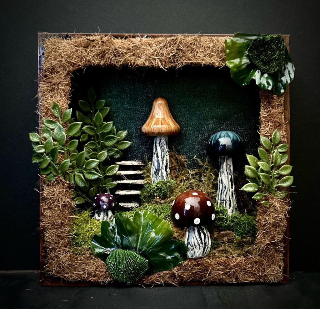 About: Acrylic paintings, mixed-media sculptures, dioramas, book art and fairy houses