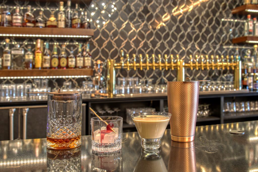 A well-crafted drink menu features 20 beers on tap, high-end takes on classics such as the Old-Fashioned and Moscow mule, along with modern creations featuring exceptional bourbon and other spirits.