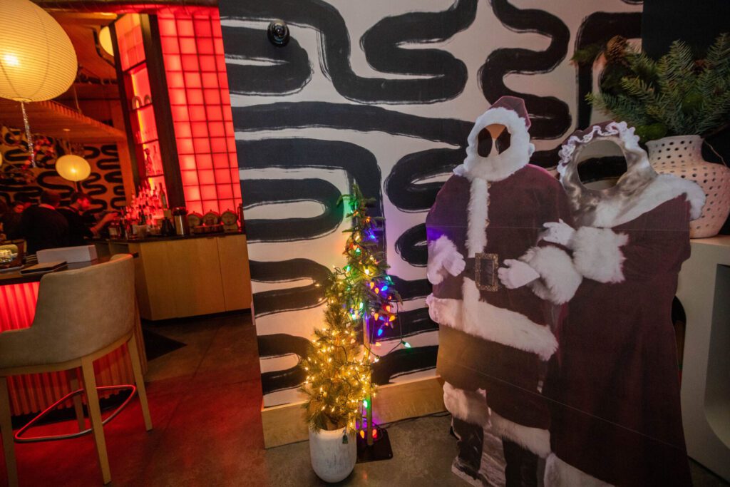 She’s not kidding. From 25 inflated “holiballs” hanging from the ceiling to Santas, trees and garland galore, the cocktail bar is filled with festiveness from top to bottom.