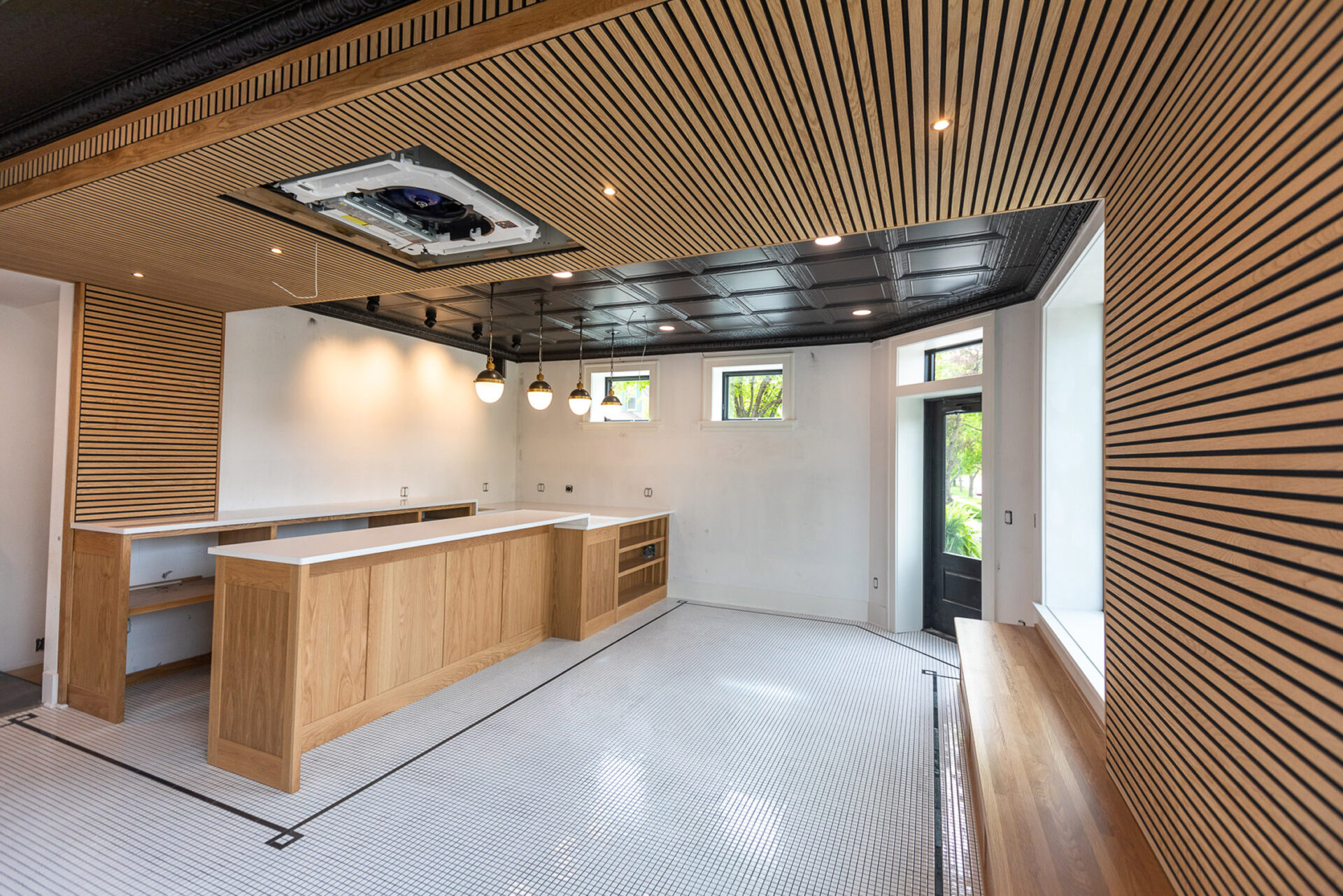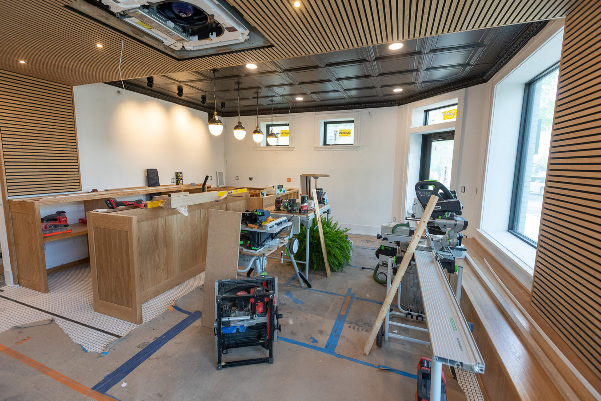 Downstairs, the interior restaurant space is starting to wrap up construction.