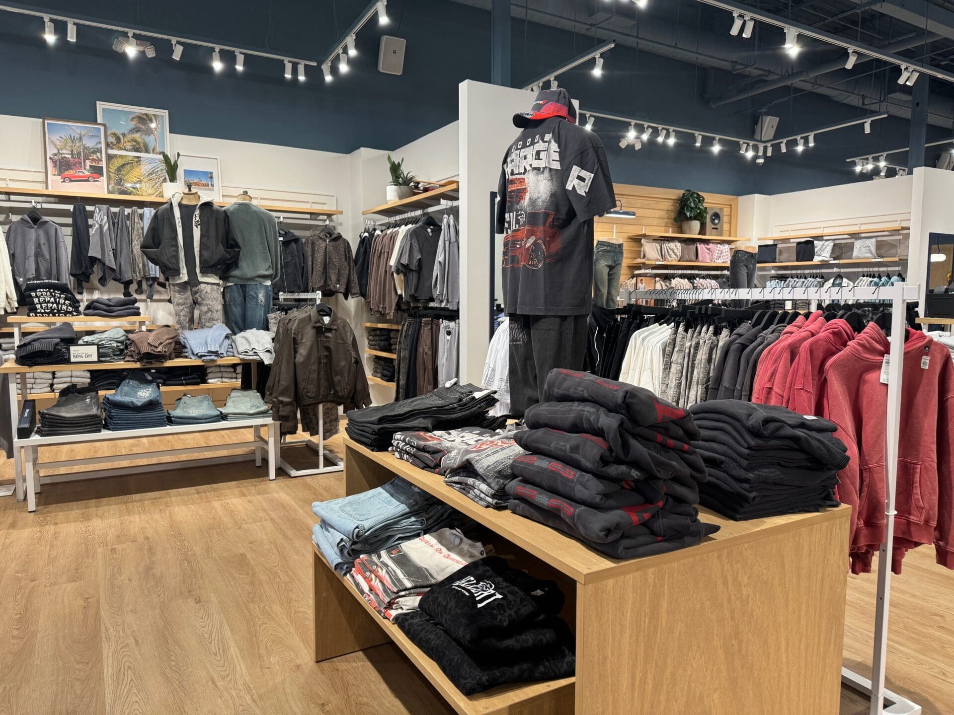 It moved into the former Forever 21 space and largely sells casual apparel for men and women, accessories and fragrances.