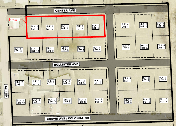In addition to its new subdivision, the Development Corporation has four infill lots that can be marketed for homes or used for spec homebuilding.