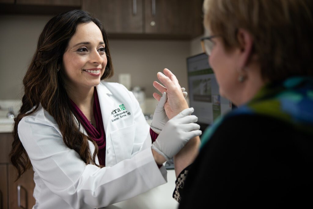 Hand surgeon Dr. Rocio Fuentes Barrow sees a patient at Avera Orthopedics.