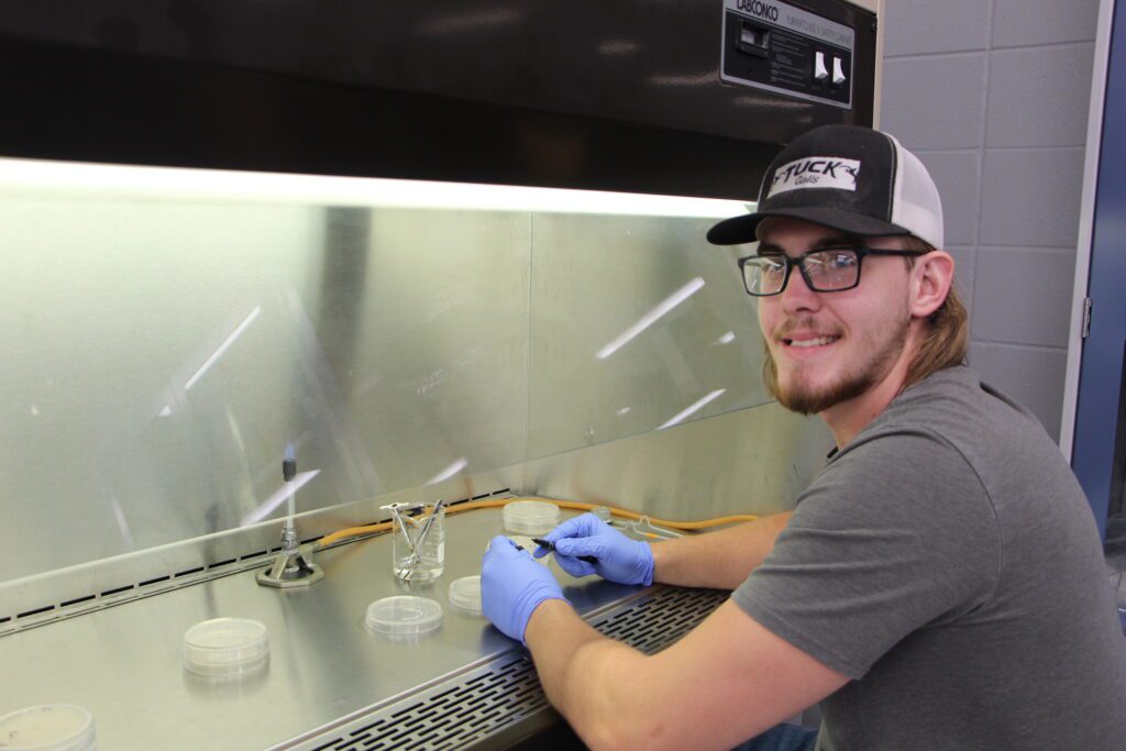 Travis Rebstock conducts applied research with alfalfa at DSU. The goal of the students’ research is to help growers.