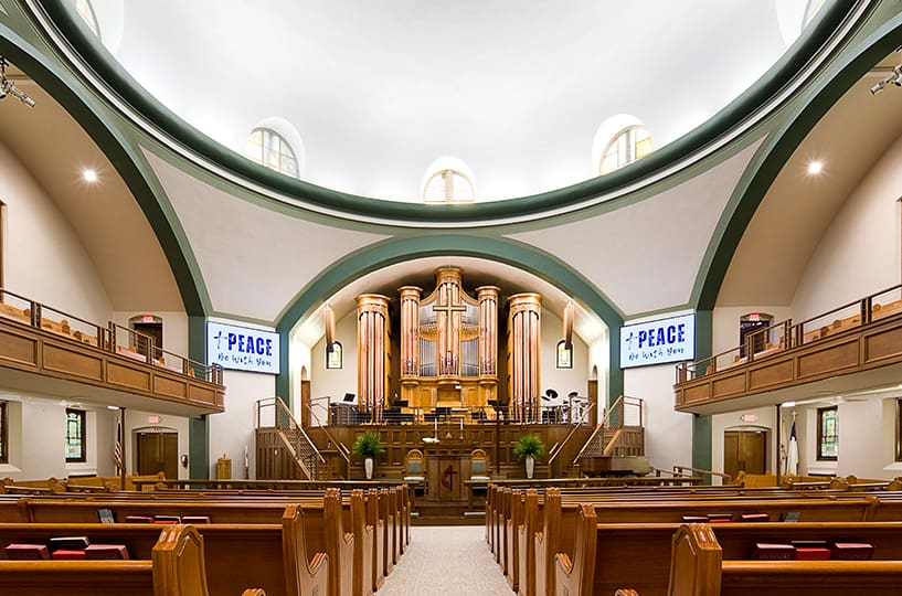 An interior refresh of a historic church provides contemporary finishes while giving due deference to its iconic dome roof. Photo credit: Cipher Imaging