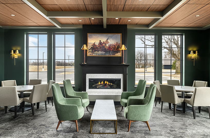The interior design of a cafe in southeastern Minnesota inspires a homelike environment. Photo credit: Dean Riggott Photography