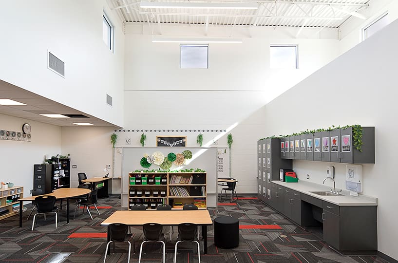 Interior classrooms at a new elementary school provide a dynamic learning environment punctuated by natural light. Photo credit: Cipher Imaging