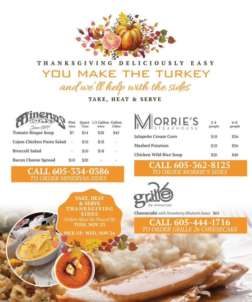 The Vanguard Hospitality family of restaurants has teamed up to offer side dishes and desserts to make your holiday meal as easy as take, heat and serve.