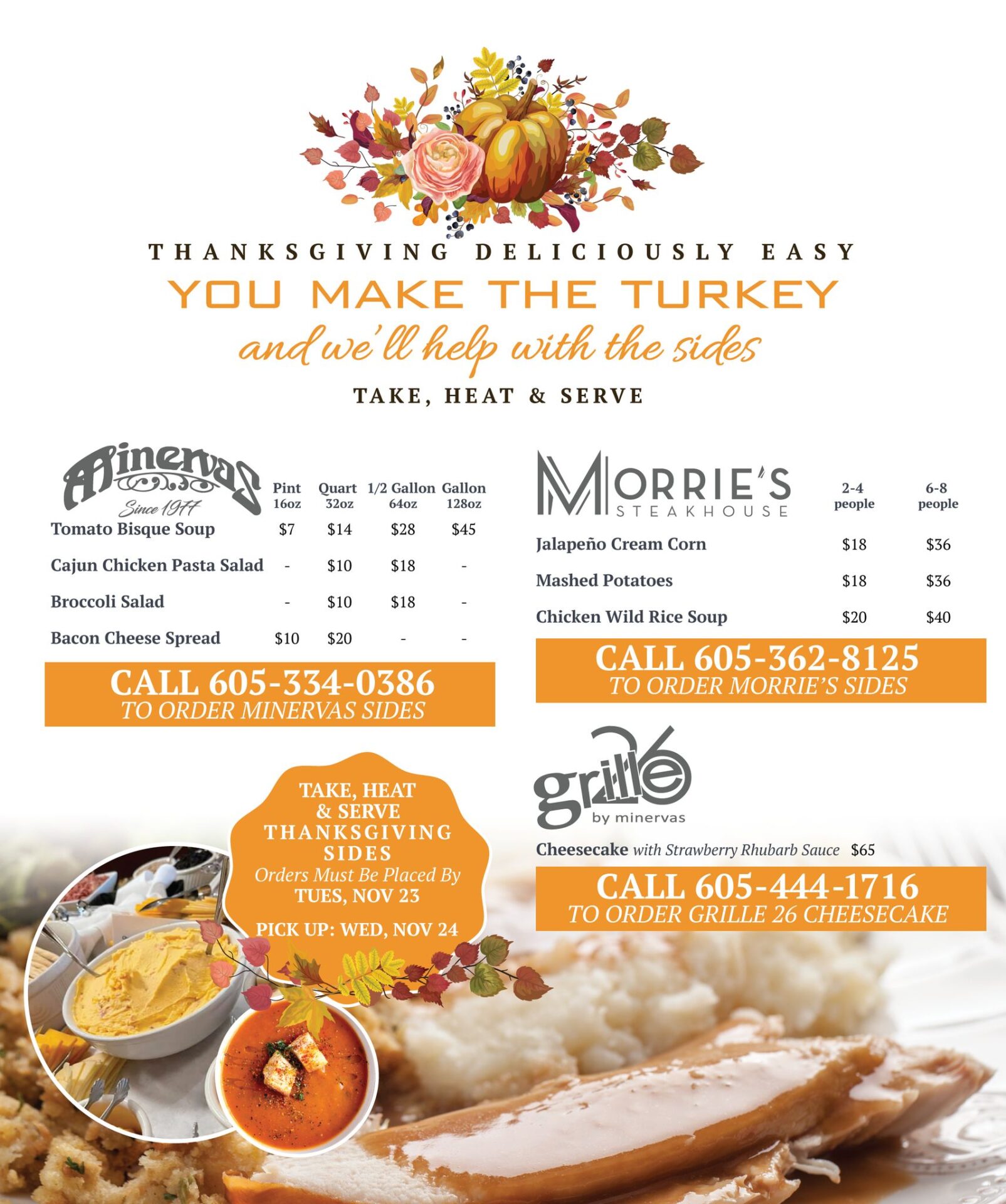Your orders must be placed by Tuesday, Nov. 23, so you can pick them up the following day.