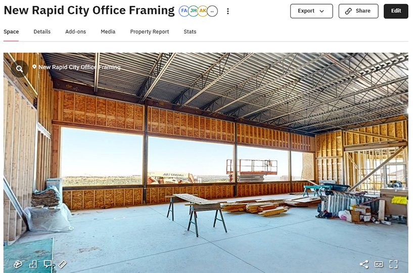 A reality capture shows what will be behind the walls of TSP’s new office that is under construction in Rapid City.