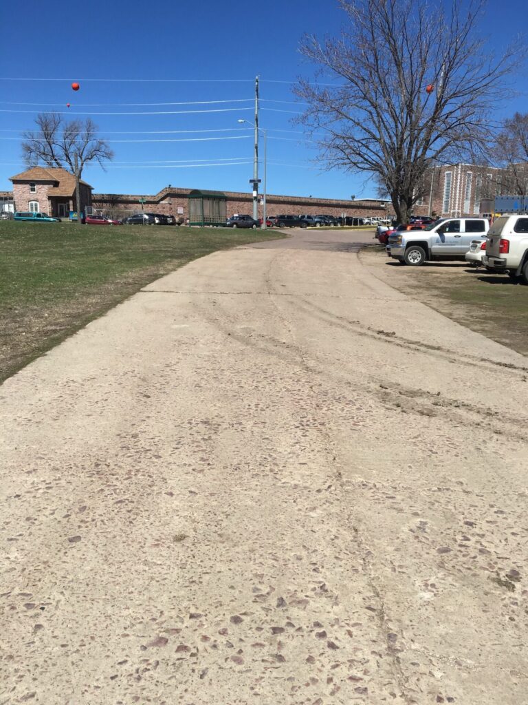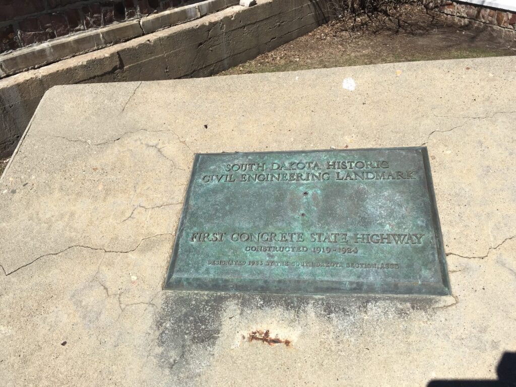 Built in 1923 and located in two segments near the South Dakota State Penitentiary, the surface marks the first concrete road built in South Dakota.