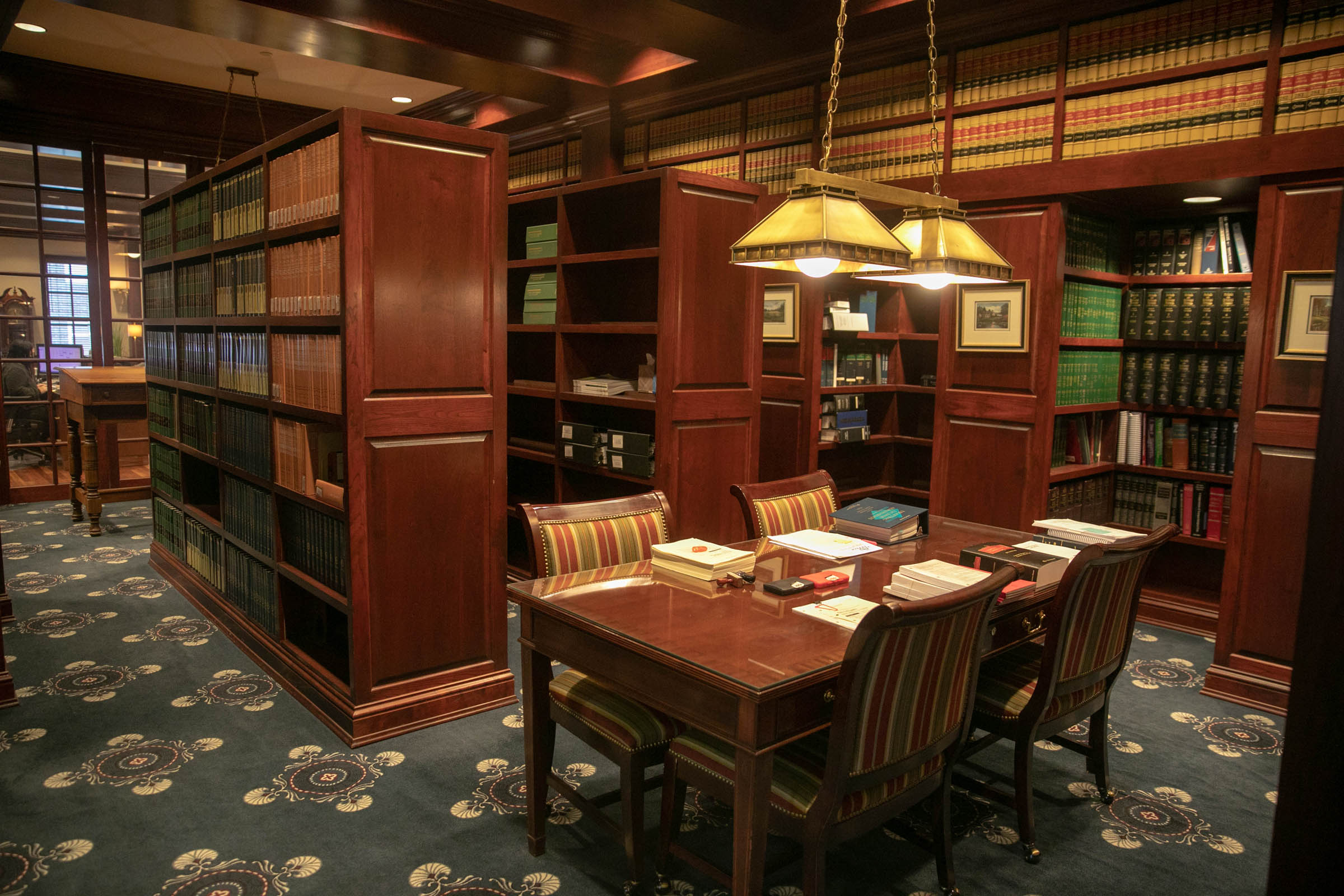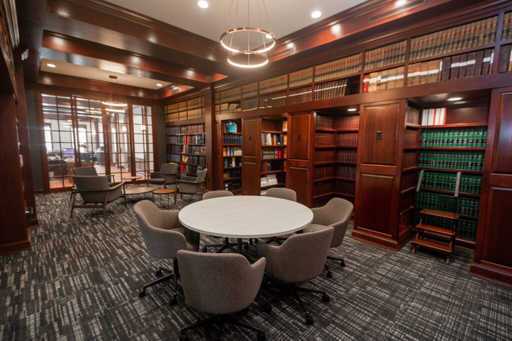 So you’ll still find a lot of law books in the library. But it also has been opened up, with new seating and easy access to the lobby.
