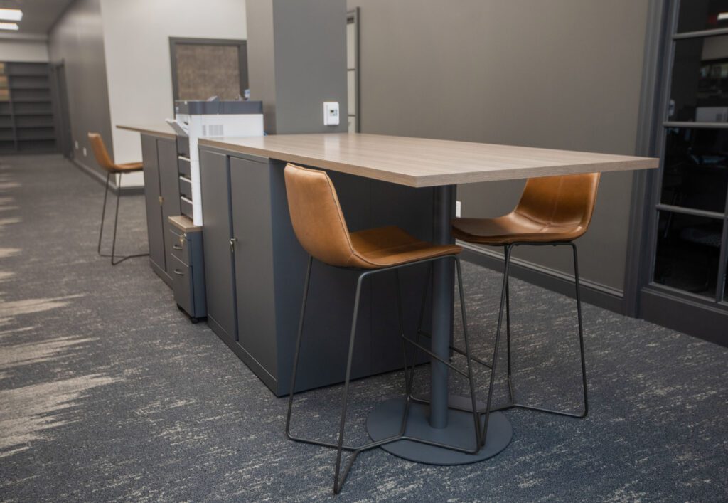 Woods Fuller came into the renovation “thinking maybe we needed a really open space, and they were able to talk through recent trends and lessons learned, and it helped us to land somewhere in the middle where it worked,” Kunkel said.