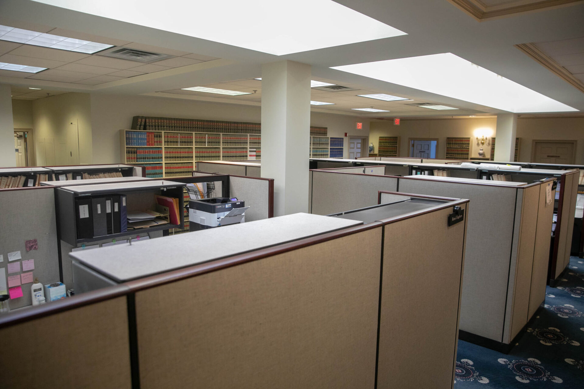 The library received an especially thorough overhaul – as law books throughout the office were weeded out based on how much they were needed or used given so much is available digitally.