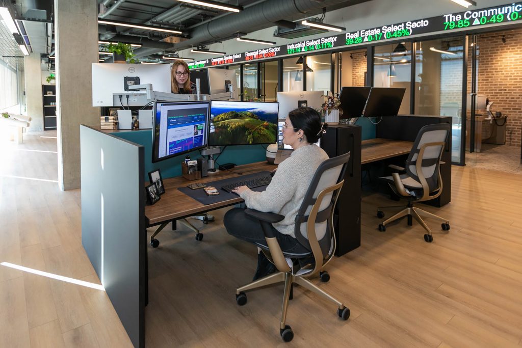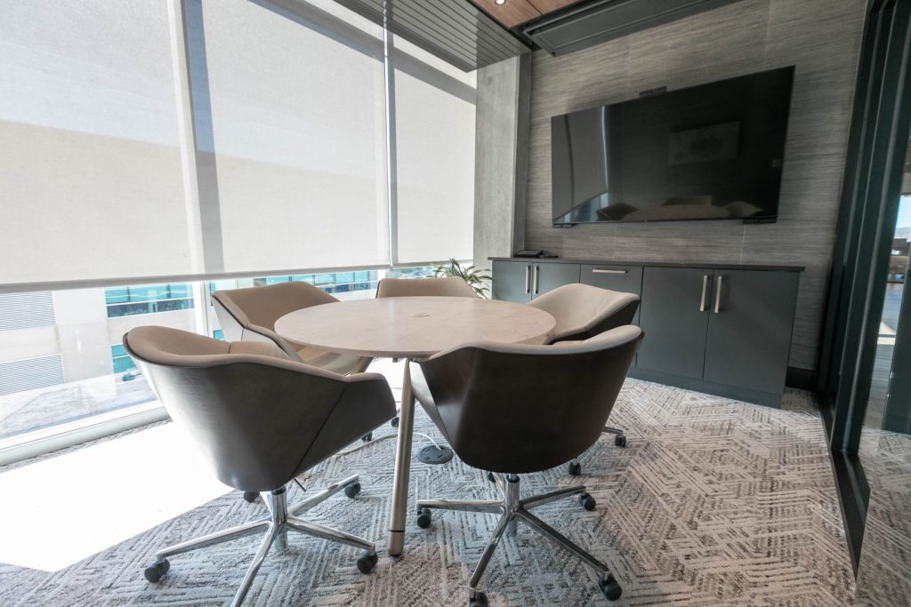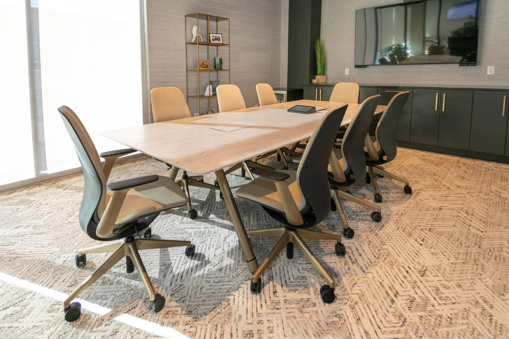 In the individual offices, IOP supplied Slim Leg height-adjustable desks featuring enclosed legs with a luxe finish on the underside, which provide a modern appearance while still allowing for flexibility.