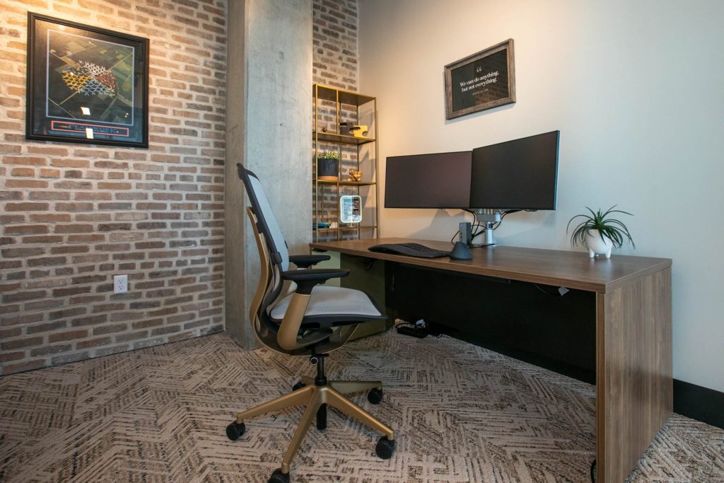 The offices “have a nice aesthetic, which is important visually because we have all-glass fronts, so we wanted something that would give the offices a clean look and be pleasing to the eye because you can see into each office,” Gonseth said. “I love it. The chair is comfortable, and the space is great.”