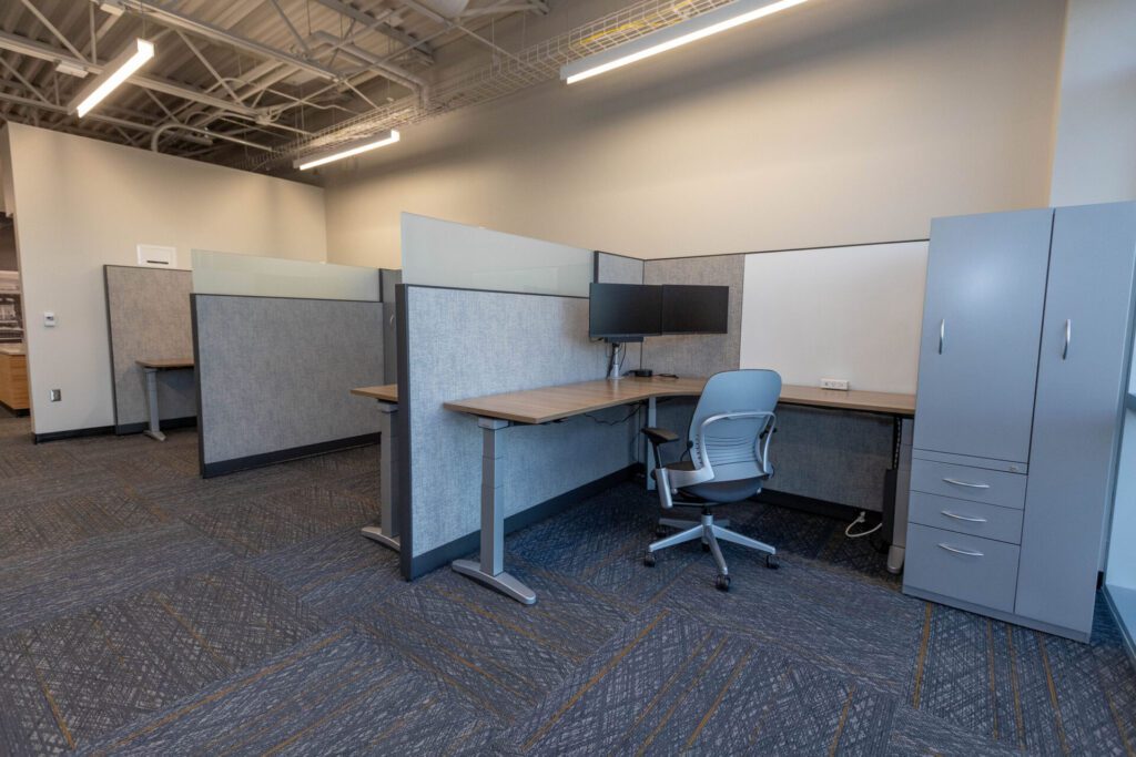 Throughout the building, there’s a mix of individual offices and workstations.