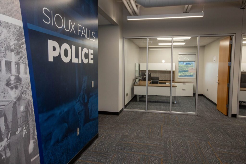 At the Public Safety Campus, there are multiple facilities, but the furnishings largely focused on an administrative building that includes offices, classroom and training space and a structurally reinforced dispatch center known as a PSAP, or public safety answering point, serving Sioux Falls and Minnehaha County.